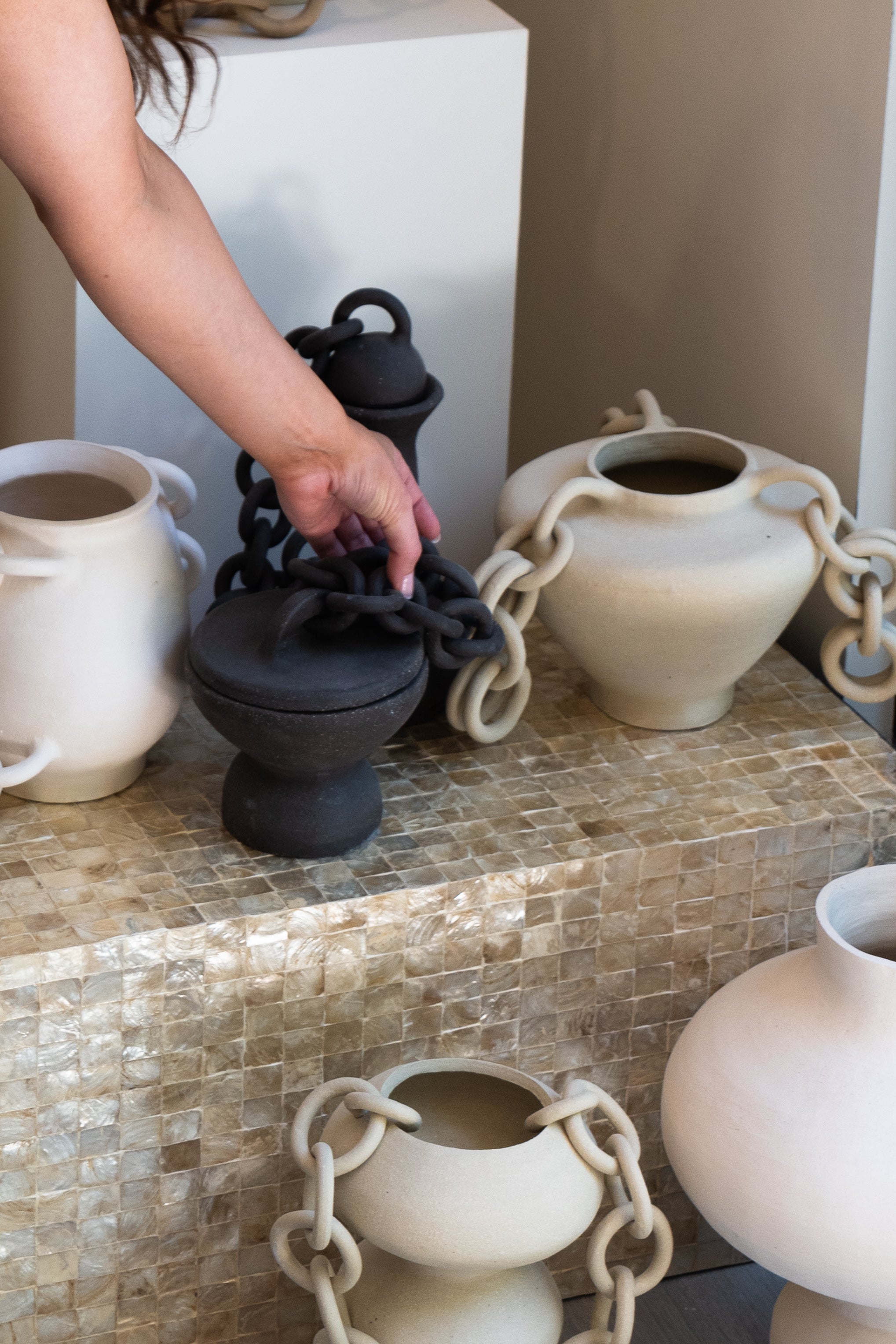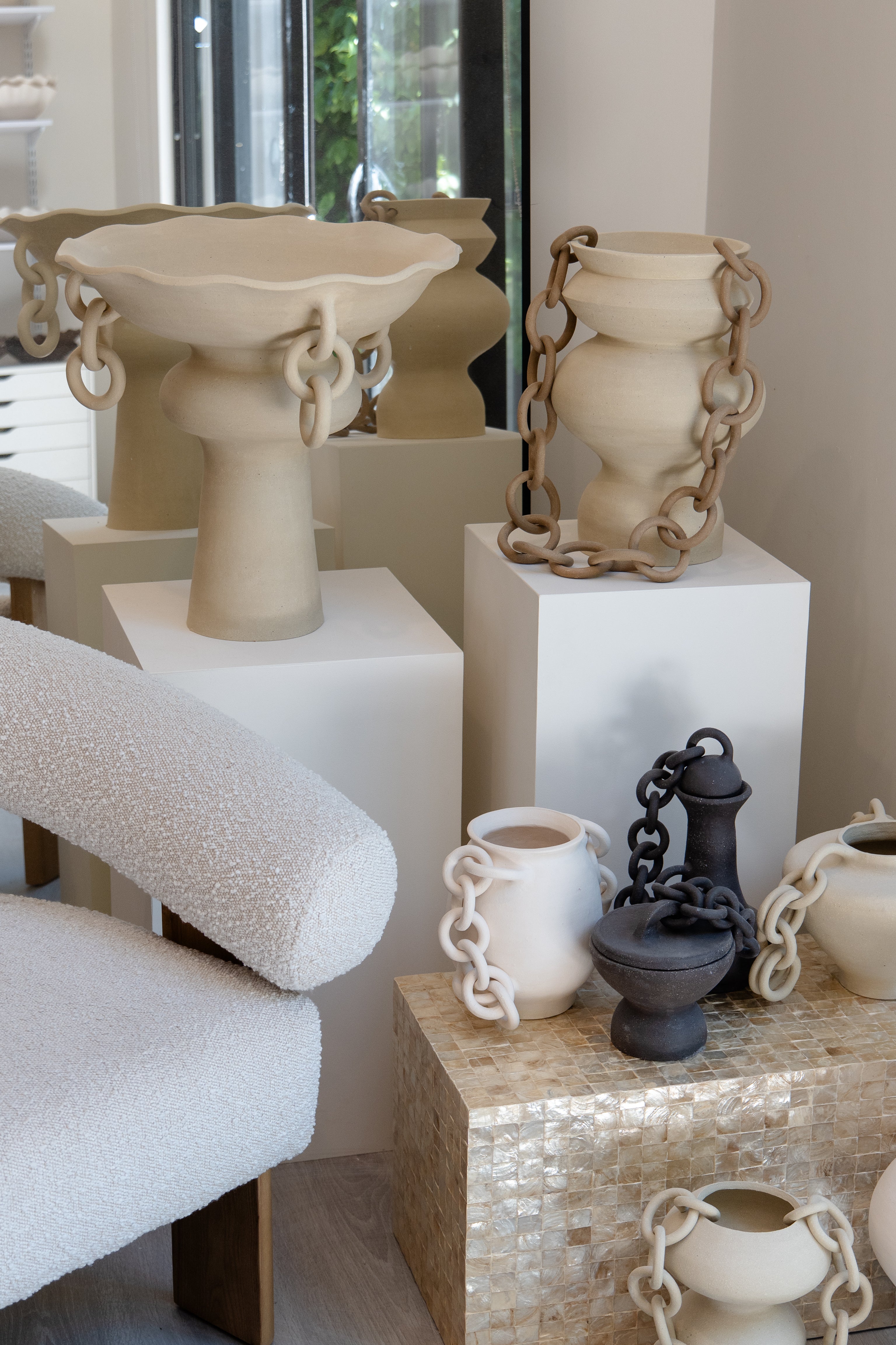 Guided by the Japanese philosophy of wabi-sabi and clay’s innate unpredictability, her work embraces the organic, the irregular, and the beautifully imperfect. Each piece is shaped slowly and intentionally by hand, celebrating the quiet charm that lives in asymmetry, texture, and trace.